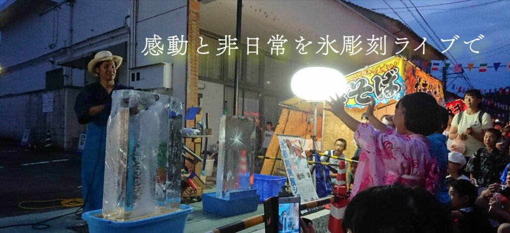 氷彫刻の実演ライブパフォーマンスを生で実施する企画となっております。